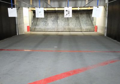 A 50 foot indoor range is offered for handgun shooters as well as .22 rimfire caliber rifles and handgun caliber carbines. There are six lanes, each with electronic target positioning rails. The backstop is covered with ballistic rubber, decreasing the dust from bullet fragmentation. Additional improvements are on the books for the future, including increased lighting and installing a ceiling above the rails. Rifle caliber cartridges and shot shell handguns are not allowed.